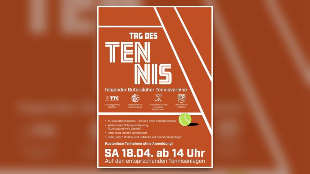 Um neue Tennis- oder Padel-interessierte und Wiedereinsteiger für den Vereinssport zu begeistern, aber auch alle Mitglieder in der neuen Sommersaison zu begrüßen, haben alle Gütersloher Tennisclubs am 18. April den „Tag des Tennis & Padel“ ausgerufen. Ab 14 Uhr können Sportler*innen am kostenlosen Schnuppertraining bei den Vereinstrainern teilnehmen. Die benötigte Ausrüstung, wie Schläger und Bälle, wird gestellt.